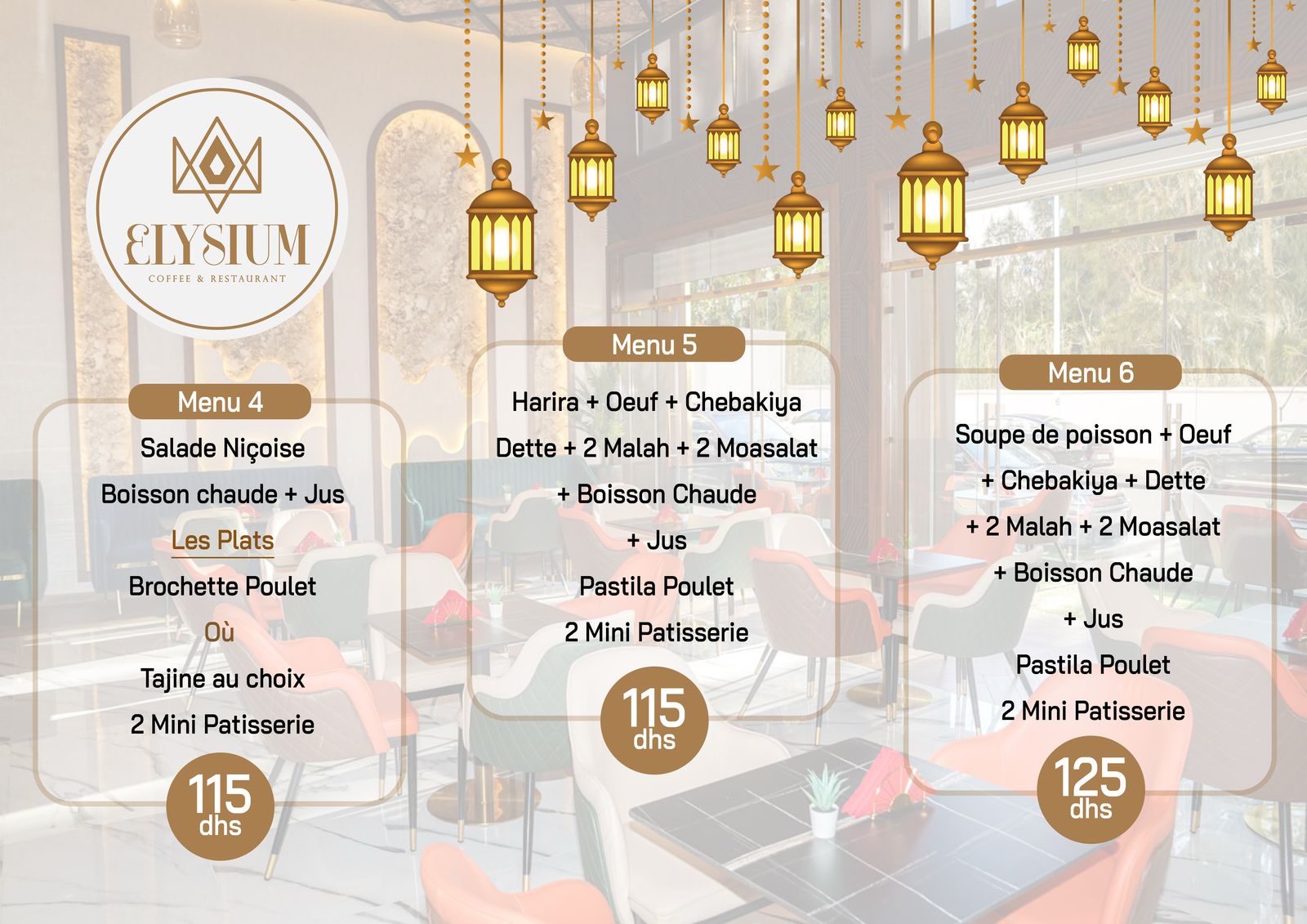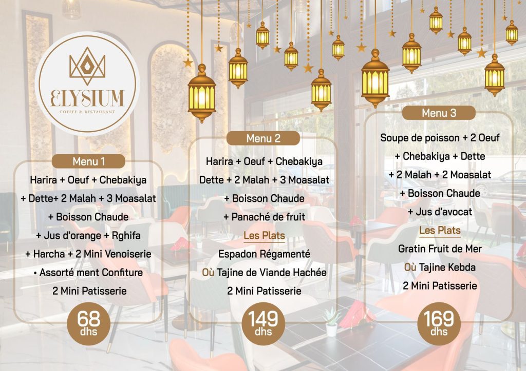 Notre philosophie repose sur trois piliers : qualité, authenticité et convivialité. Tous nos produits sont préparés avec des ingrédients soigneusement sélectionnés pour offrir une expérience inoubliable, dans un cadre chaleureux et raffiné. Elysium, c’est bien plus qu’un restaurant : c’est un voyage gustatif où chaque détail est pensé pour éveiller vos sens.